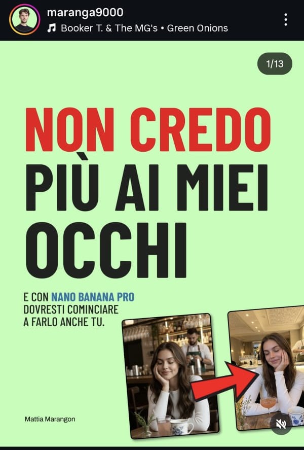 Un paio di settimane fa, Mattia Marangon (founder di Legolize) ha condiviso con il suo pubblico quanto l’AI (con lo strumento Nano Banana Pro) stia diventando sempre più precisa e dettagliata nella produzione di immagini.
